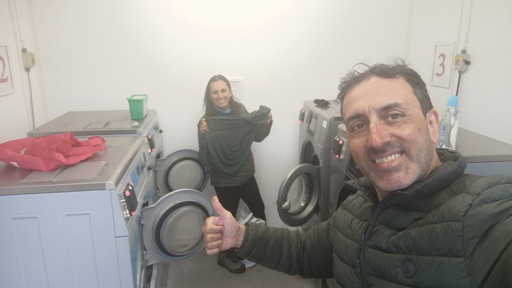 Lavar la ropa fue relativamente sencillo. Comprabas una tarjeta en la entrada y eso te daba derecho a unas lavadoras y secadoras… Con éstas últimas sí hubo problema, ya que había mucha demanda y solo dos secadoras, así que tuvimos que dejar la ropa tendida junto a unas estufas que había allí. Al día siguiente la ropa estaba casi seca.