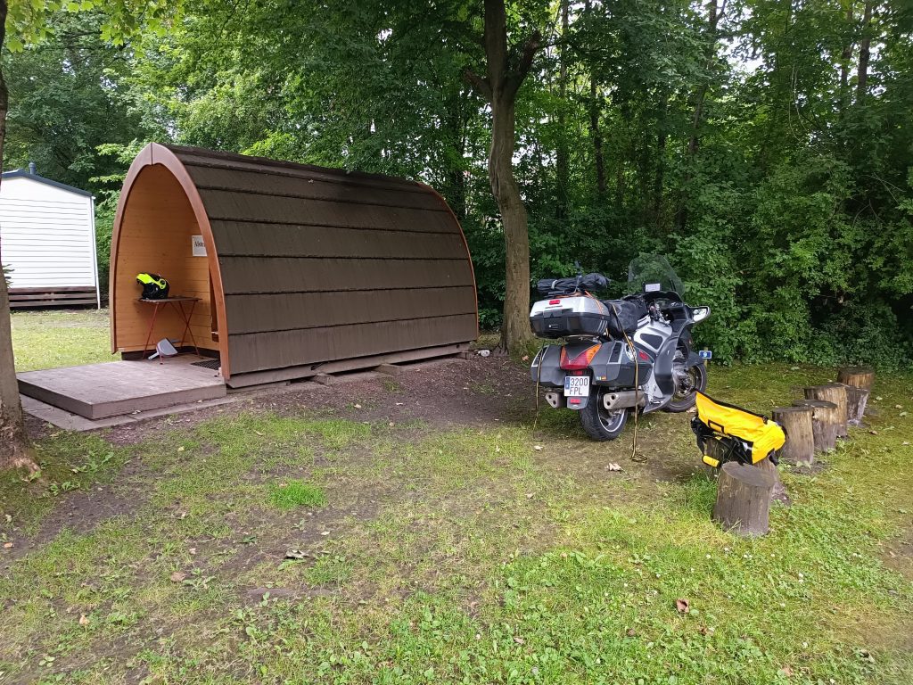 Después de una parada para comer, hoy sí llegamos a las 18.00 al destino. A esa hora llegamos a uno de los mejores campings alemanes. Una vez más, había previsión de lluvias para toda la noche y parte de la mañana, así que reservamos cabañas. Las que les quedaban, eran sólo de dos plazas, así que tuvimos que reservar dos, con un diseño que nos gustó mucho.
